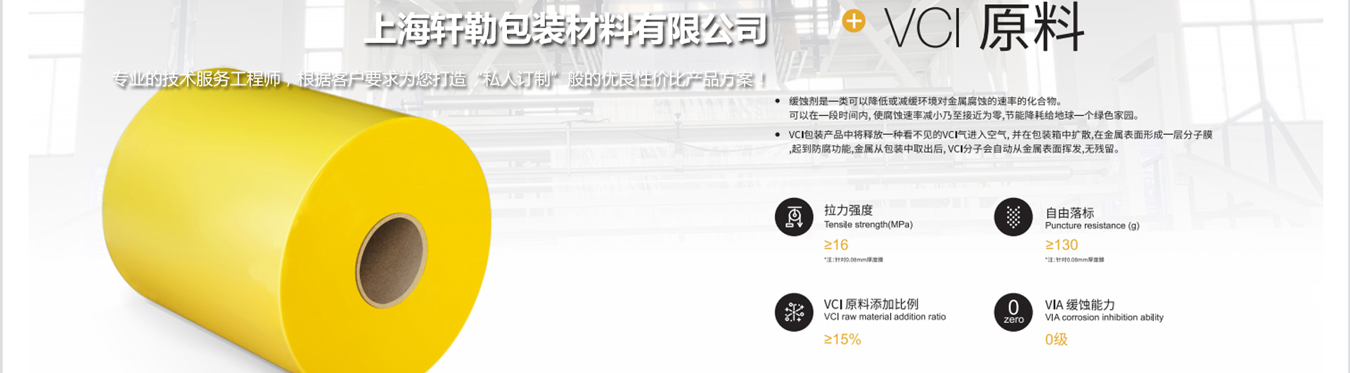 VCI氣相防銹膜是一種PE材質的防銹材料包裝膜。其用途較為廣泛,既可以作為大型機械設備的防銹包裝材料,又可以作為小型金屬零件的防銹包裝。VCI氣相防銹膜和VCI氣相防銹紙一樣,都是可以直接接觸所包裝的金屬產品的,不僅不會對金屬件造成任何損傷,還能為金屬材料提供防銹保護,而且VCI氣相防銹膜是可回收利用的,不會因此造成更多的環(huán)境污染。